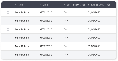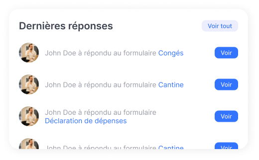 Toutes les réponses sont regroupées dans un tableau de bord unique. Visualisez, triez, filtrez et exportez vos données en quelques clics, sans ressaisie.
