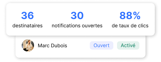 Analysez l’ouverture, la consultation et les interactions liées à vos notifications.Ajustez vos messages et vos timings pour maximiser leur impact auprès des équipes.